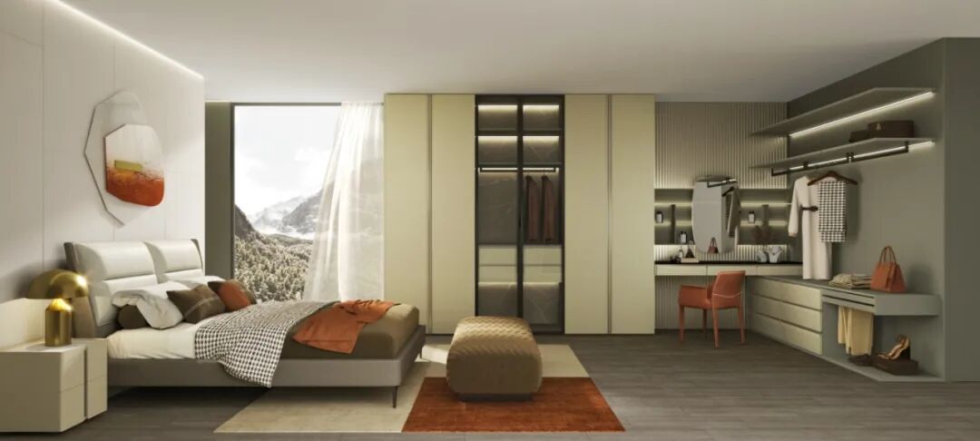 此次AI家居获奖作品为现代轻奢风——暮言系列。此系列设计灵感源于暮色余晖中归家的美好定格,以沉静的家居色彩与悦享的人文需求相结合,将居者从生活围城的束缚和磨砺中释放,通过奢感设计美学与环保材质,构筑健康、品质、优雅的居家生活方式。