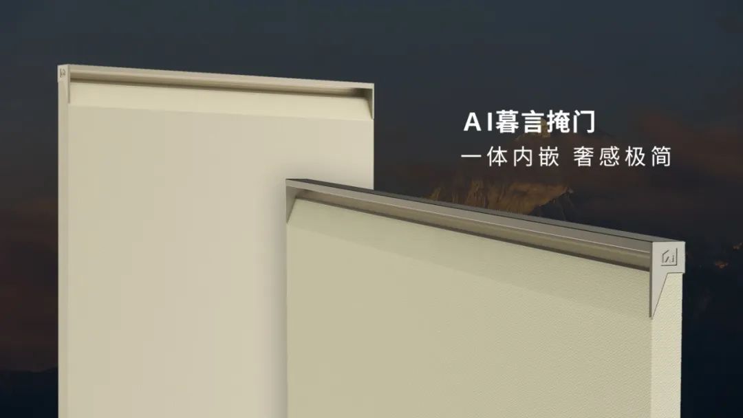 在产品门型设计上,产品研发团队立足于暮言系列的中高端产品定位,以极简的设计手法,将精致金属拉手与质感吸塑板材巧妙融合,打造奢感极简的AI暮言掩门。一体内嵌式门型设计搭配超现代切角设计元素,视觉立体、极简出型。