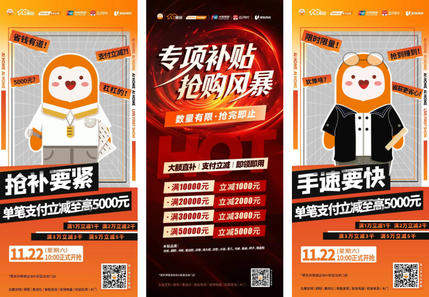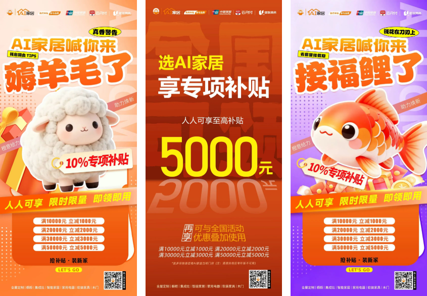家装预算有限?担心优惠不透明?AI家居专项补贴帮你轻松减压,享10%立减,单笔支付至高补贴5000元,还有能可全国活动优惠叠加。欢迎大家前往AI家居全国门店咨询、领用专补,让每一分钱都花在刀刃上~
