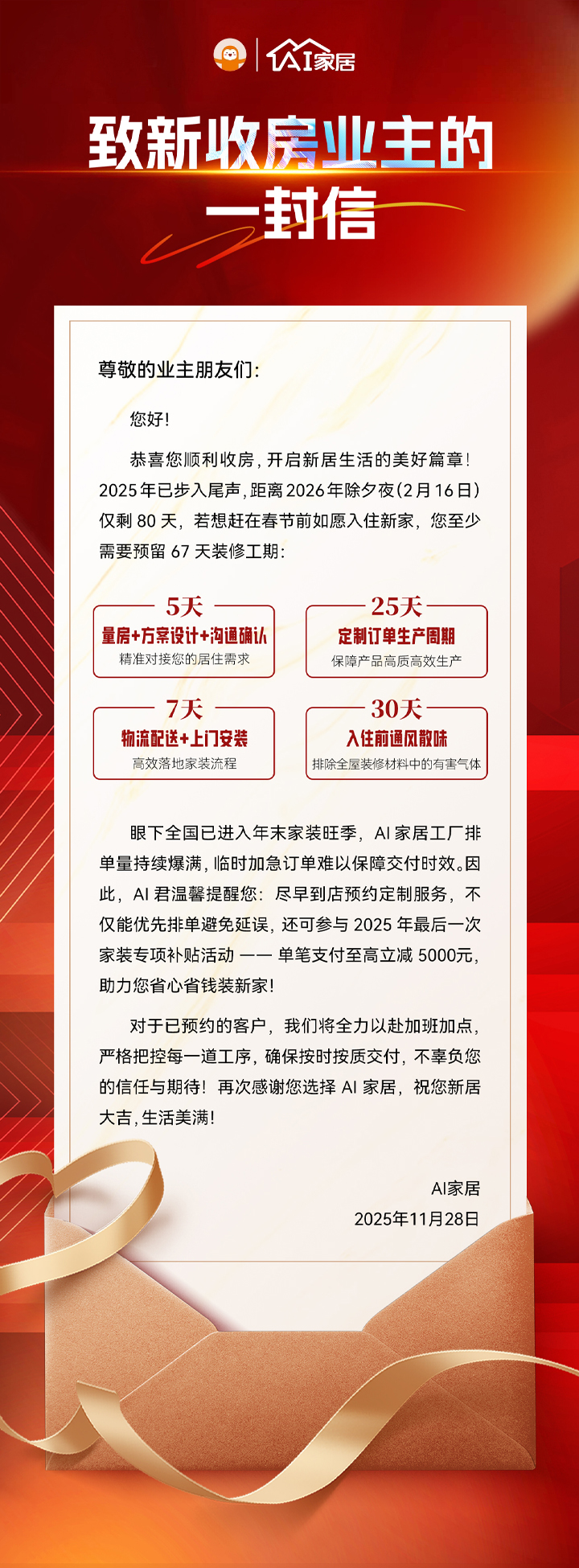 年末家装季丨AI家居致新收房业主的一封信